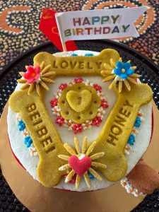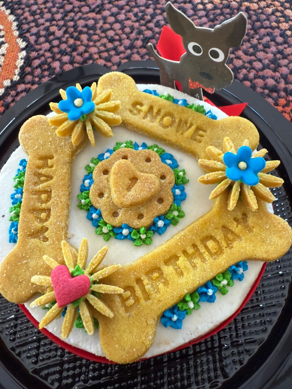 Homemade Tuna & Salmon 4’ Birthday Cakes for fur kids. Homemade with organic oat bran, organic chia & flax seeds, egg whites and parsley. Topped with a yoghurt/ coconut covering, golden crunchy salmon biscuits and cream cheese flowers. Be healthy and enjoy your special day with your fur family. Available by pre-order.